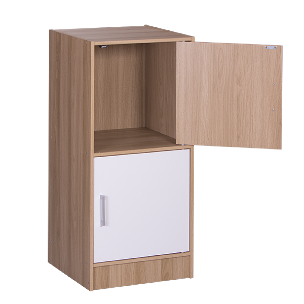 Tủ có 2 hộc và 2 cửa, cánh tủ có 2 mặt 2 màu khác nhau (Vân sồi 6052 và Trắng) giúp bạn có thể lựa chọn lắp ghép một cách linh hoạt theo ý thích, tạo sự thú vị cũng như nét độc đáo cho không gian nhà bạn.HDSD: Sản phẩm sử dụng trong nhà, tránh ẩm ướt và ánh nắng trực tiếp. Hạn chế di chuyển sau khi lắp ráp. Tải trọng từng hộc 3-5 kgs.