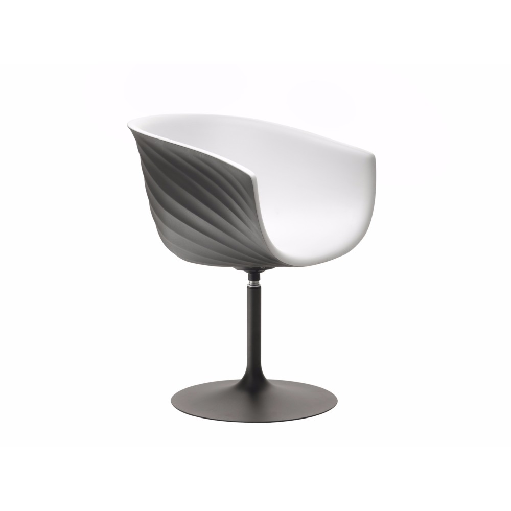 Khung mặt ghế sắt được phủ lớp polyurethane bên ngoài. Bề mặt sau ghế được đúc vân sọc. Chân ghế sắt với đế chân D45cm được sơn tĩnh điện. Chân ghế có cơ chế xoay.