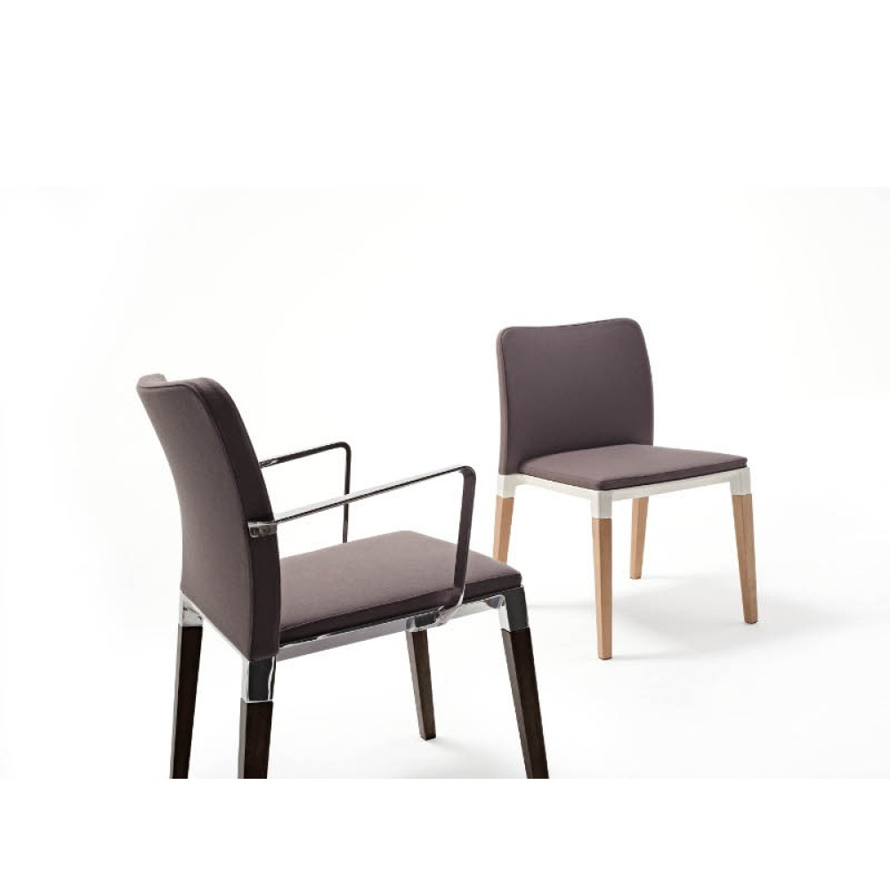 Khung đế mặt ghế và tay là nhôm đúc được sơn tĩnh điện (bạc 68 - trắng 18 - đen 08). Mặt và lưng ghế lót mouse, bọc vải Zen/Core/Cosmos/Crosscheck. Chân ghế gỗ 40x40 được sơn bóng màu tự nhiên hoặc màu dark walnut FG/07.