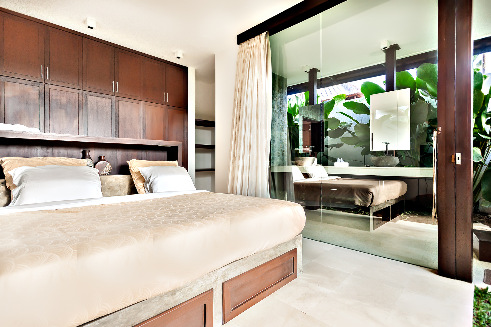 - Nếu phòng rộng nên đặt tấm bình phong hoặc tủ rộng ngăn cách giữa nhà vệ sinh và phòng ngủ.